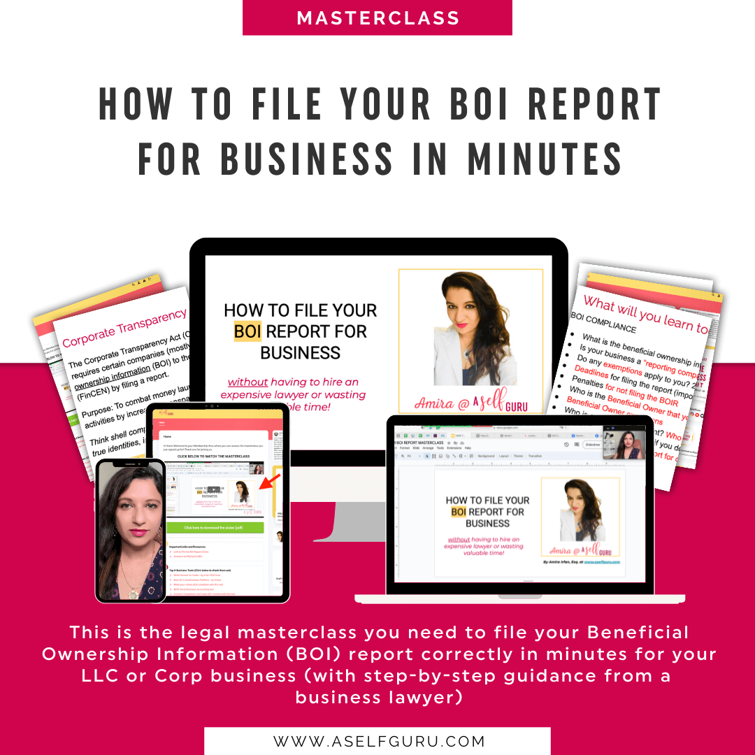 If your business is an LLC or Corp and you haven't yet filed your BOI report, then make sure to join me in this masterclass to file this together. This is the fastest, easiest, and MOST AFFORDABLE way to get done with this legal requirement.