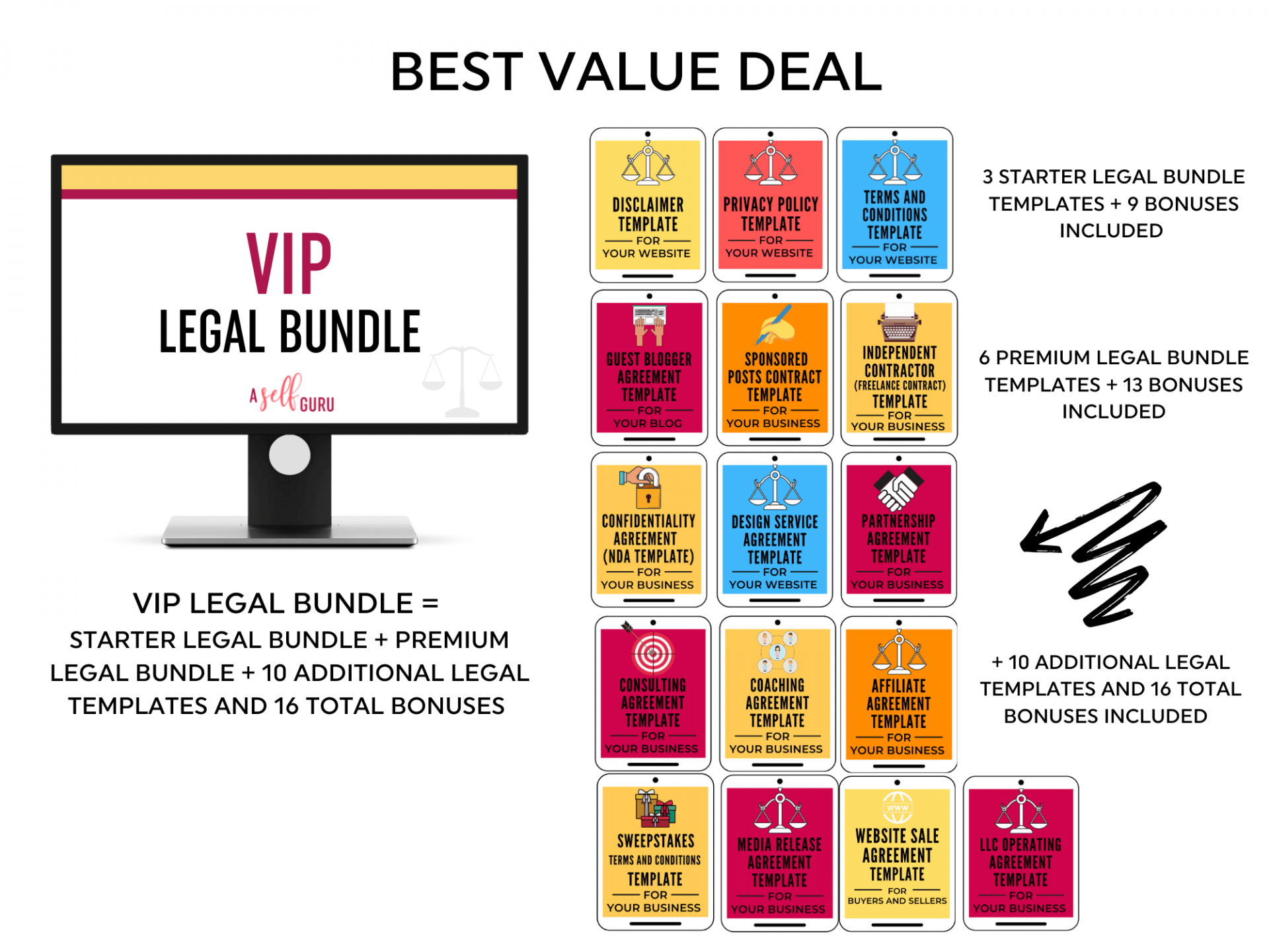 Whether you are a coach, freelancer or a consultant, you'll need to make sure your clients are happy with your services, pay on time, and that you are protected from legal liability. So proper disclaimers and legal contracts in our VIP legal bundle outlining your scope of work and responsibilities are critical to your success.